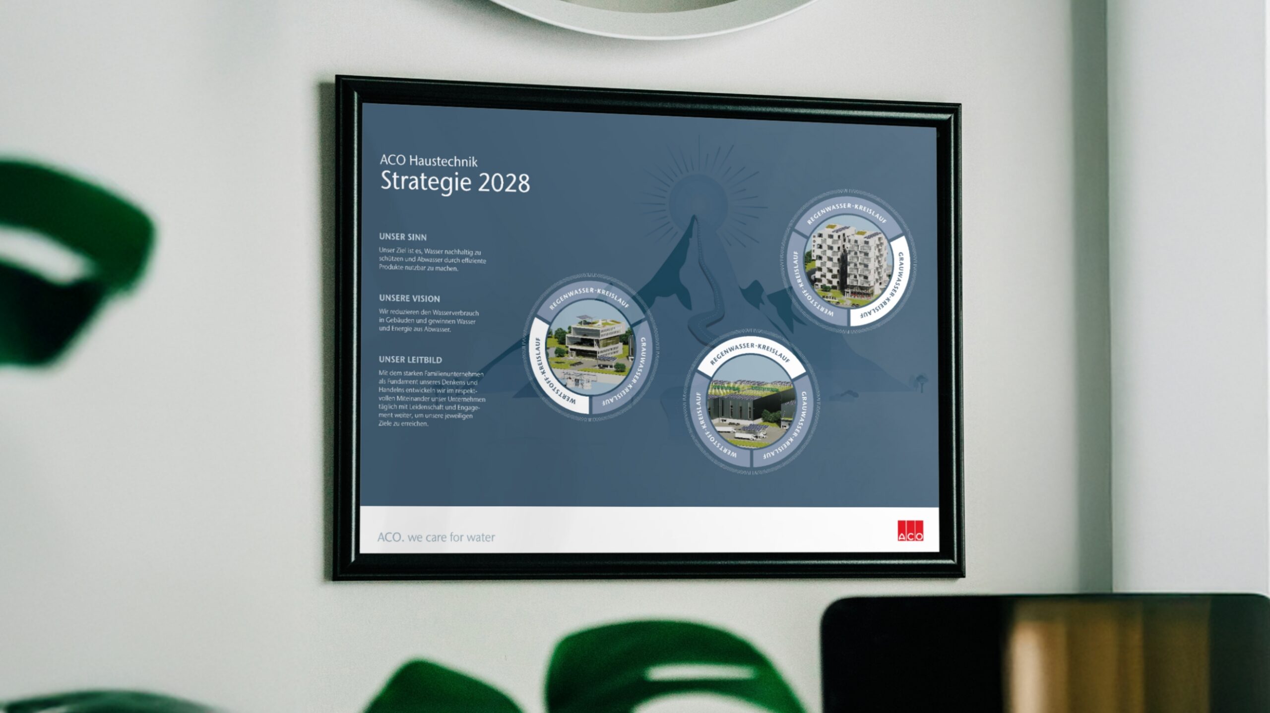 Vor dem Hintergrund des Klimawandels steht die Baubranche vor der Herausforderung, Wasserkreisläufe in Gebäuden neu zu denken. Für ACO galt es, zukunftsweisende Ideen jenseits der reinen Produktherstellung zu identifizieren und diese systemischen Zusammenhänge für drei unterschiedliche Gebäudetypen – vom Einfamilienhaus über das Wohnquartier bis zum Industriegebäude – visuell erlebbar zu machen.
